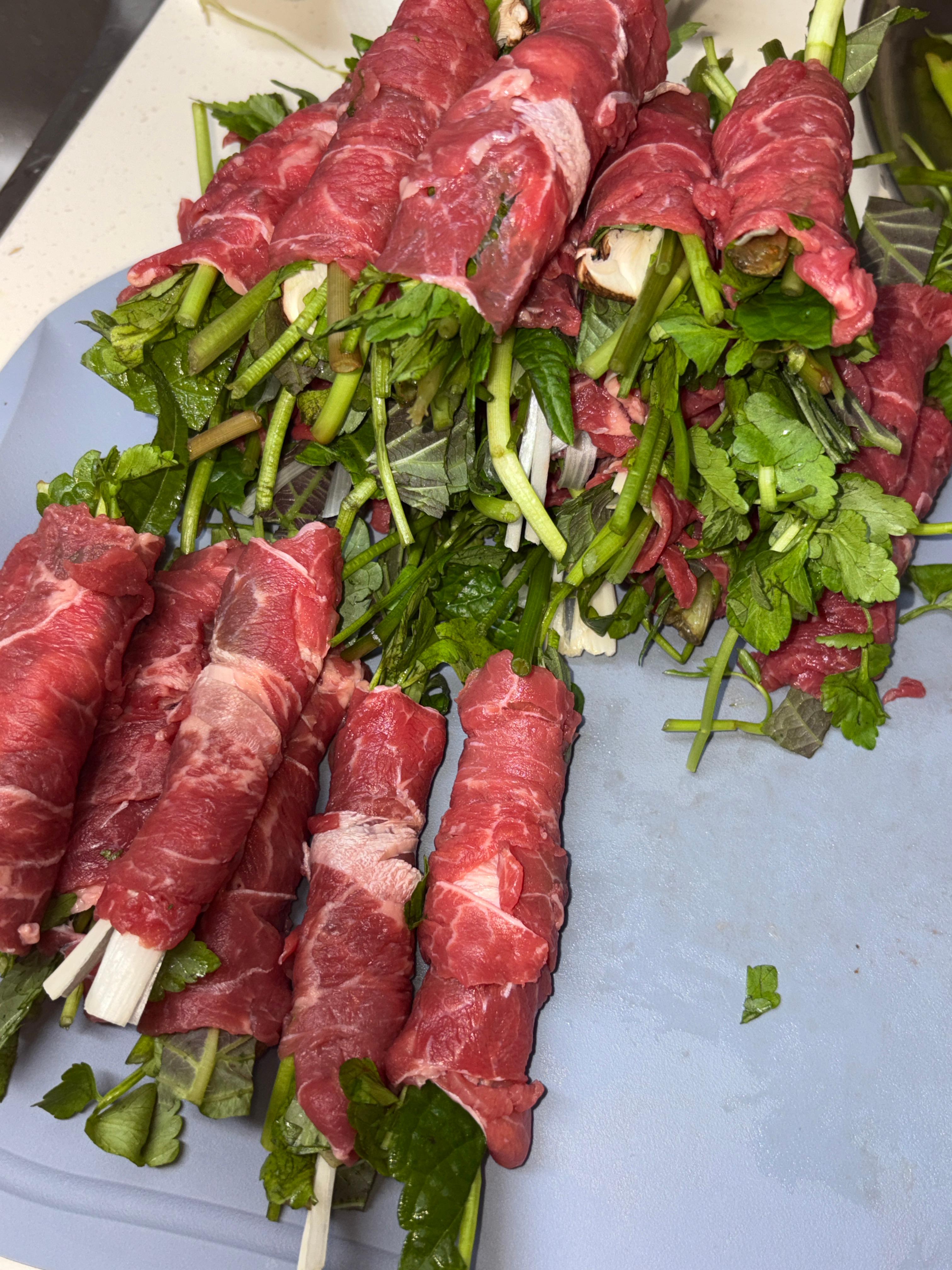 2. 얇게 썰어두고 하나 하나씩 소고기로 말면 끝!!!