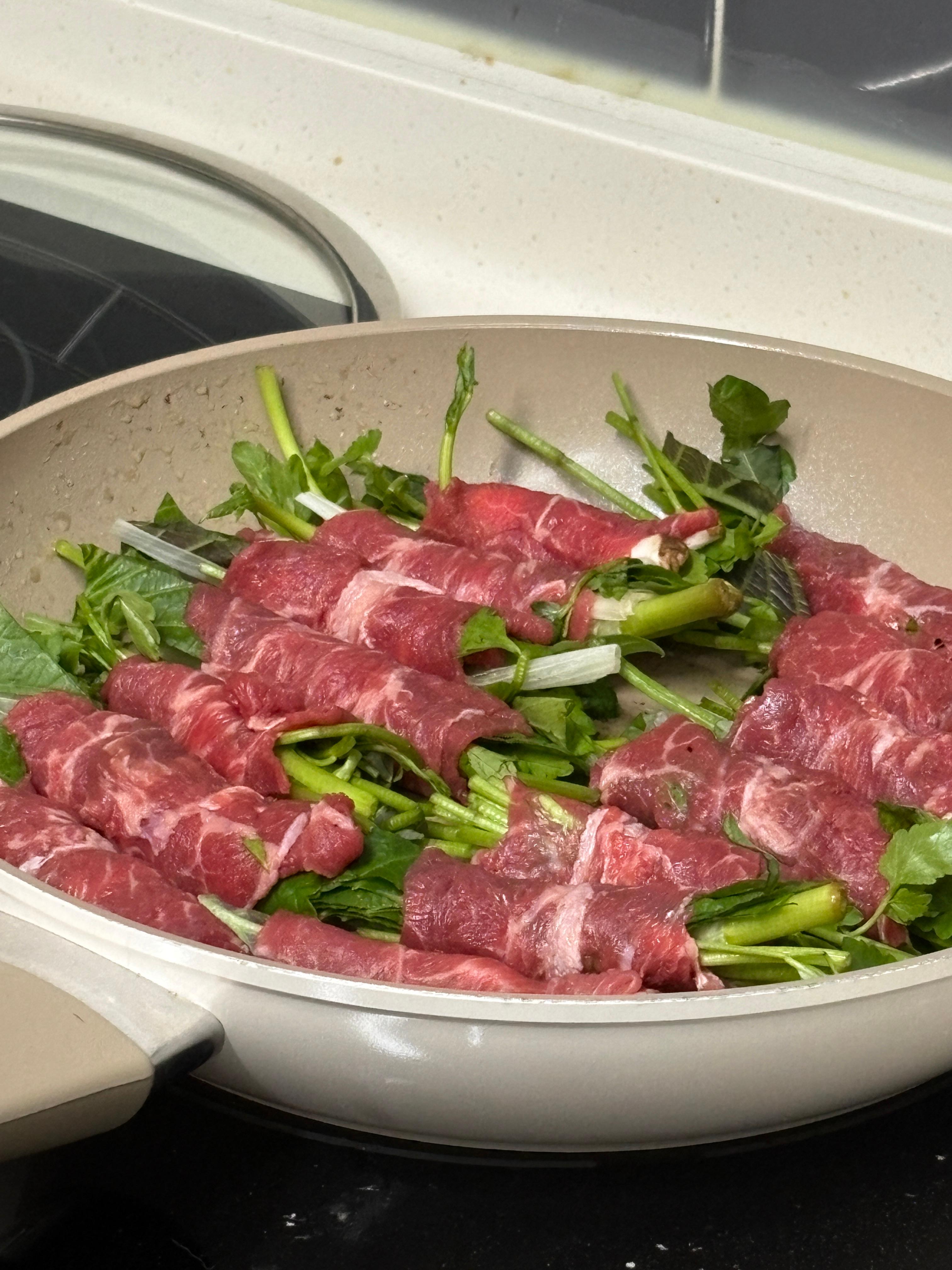 미나리가 향긋해서 고기와 무척 잘 어울렸고